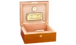 A humidificateur de luxe plaqué or avec ouvertures de ventilation réglables pour le contrôle de l'humidité réglable, hygromètre de précision pré-calibré et innovant RibTech les nervures de ventilation offrent un environnement incroyablement efficace pour vos cigares. Le système de séparation exclusif Adorini améliore encore le Cedro Deluxe avec des clips d'étiquettes bonus pour plus de flexibilité et d'organisation, ainsi qu'une plaque métallique cachée sous le placage de cèdre sur la face inférieure du couvercle pour un placement facile de l'humidificateur et des aimants de l'hygromètre.