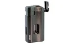 Un briquet jet puissant et multifonctionnel en gris foncé élégant avec une surface mate et des éléments décoratifs élégants dans un design en nid d'abeille. Ce briquet allie multifonctionnalité et design moderne et constitue un accessoire indispensable pour les amateurs de cigares.