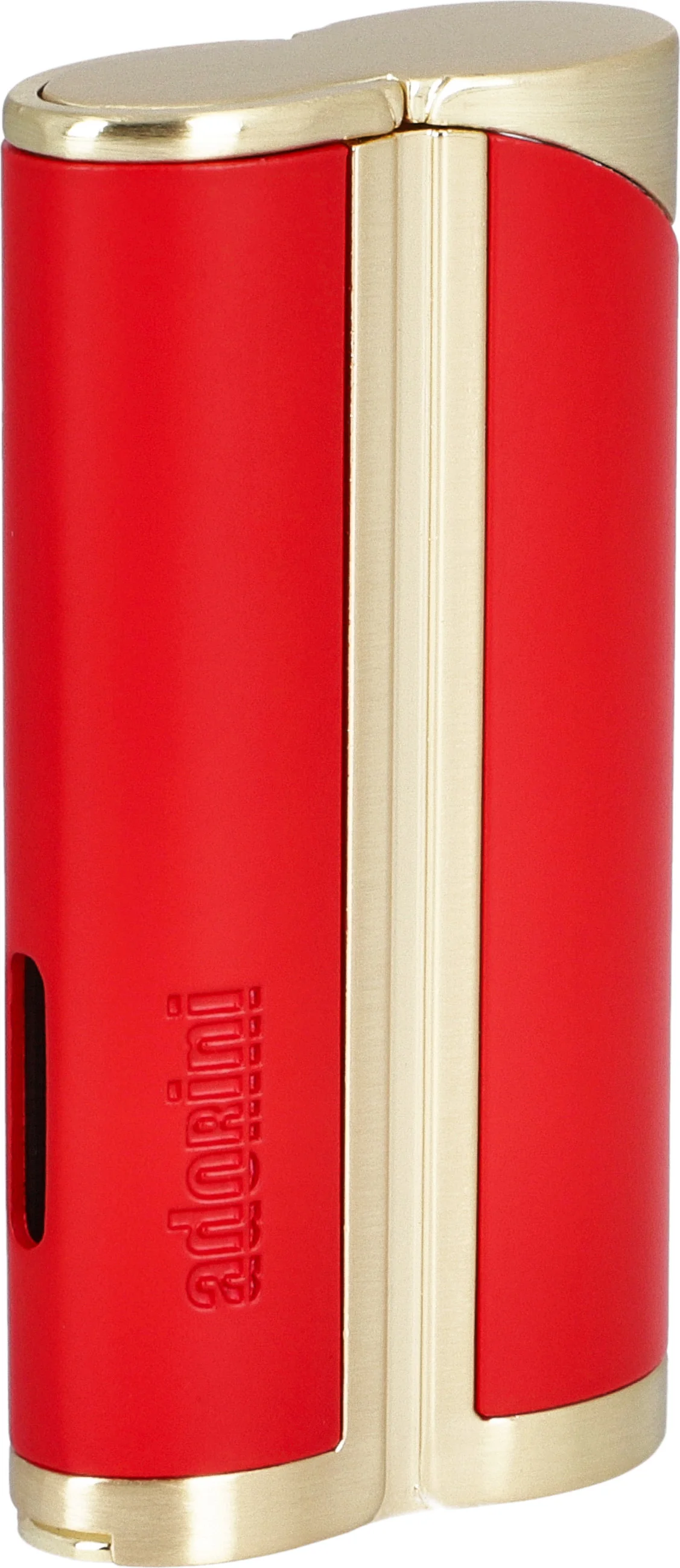Briquet adorini courbé à jet unique rouge / or satiné avec poinçon pour cigare
