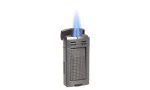 - Flamme à double jet à l'épreuve du vent, où les flammes s'effilent l'une vers l'autre pour assurer un allumage précis et sûr de votre cigare sans noircir accidentellement la cape.