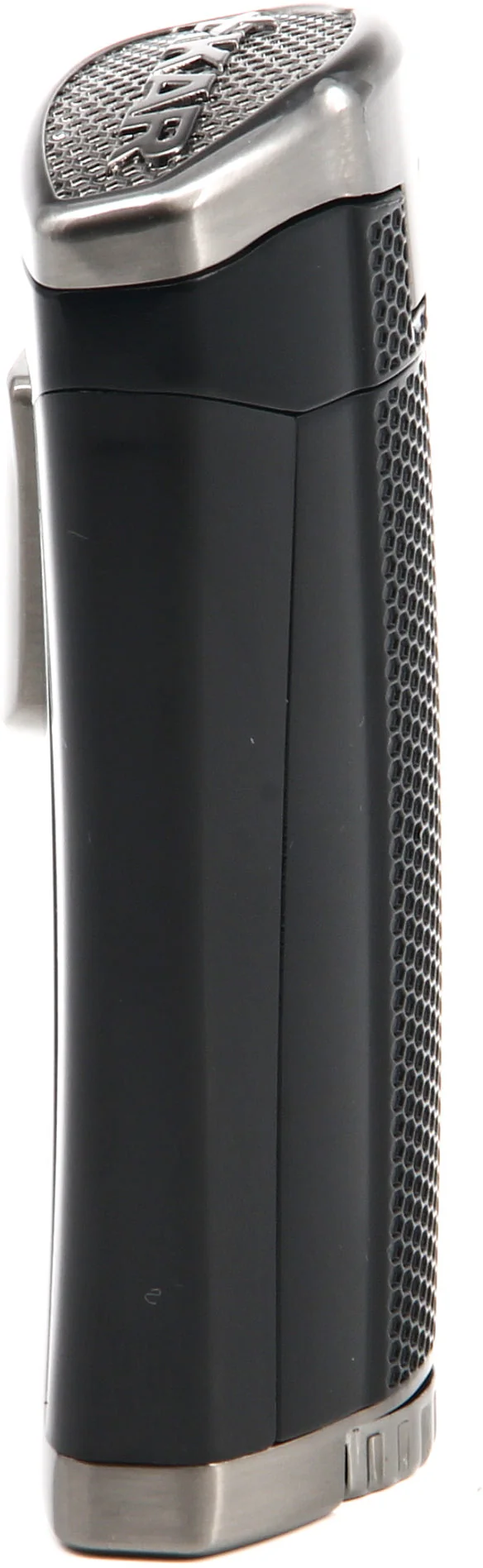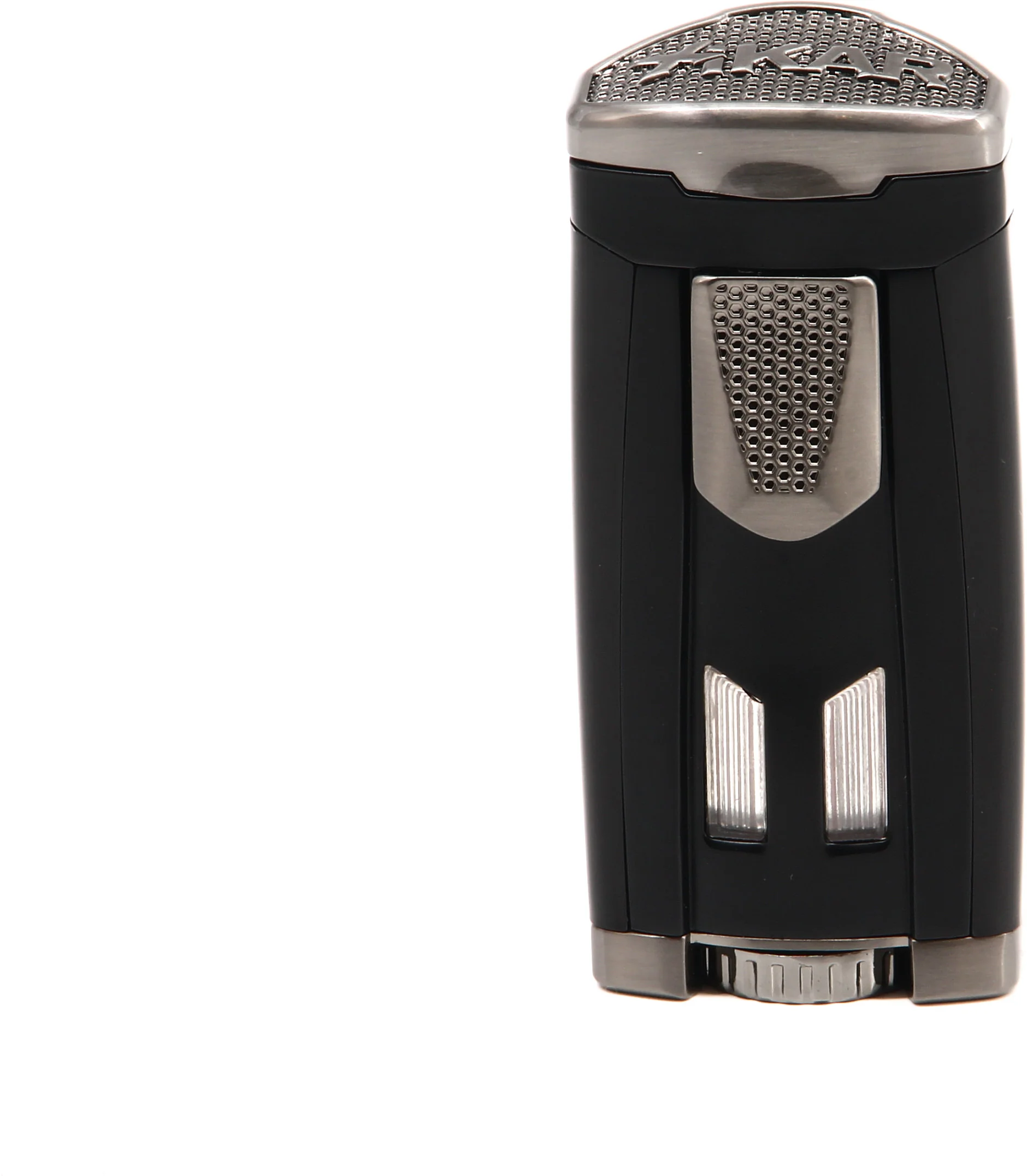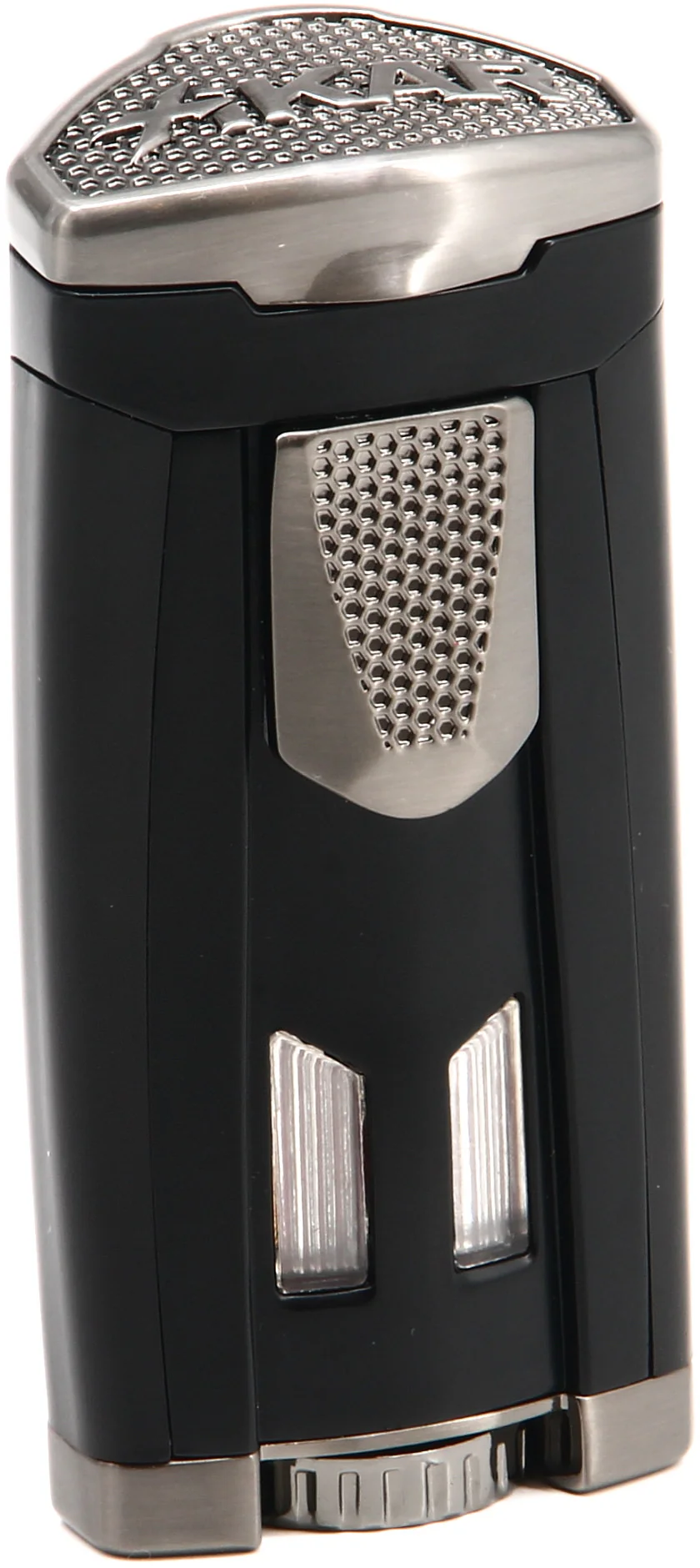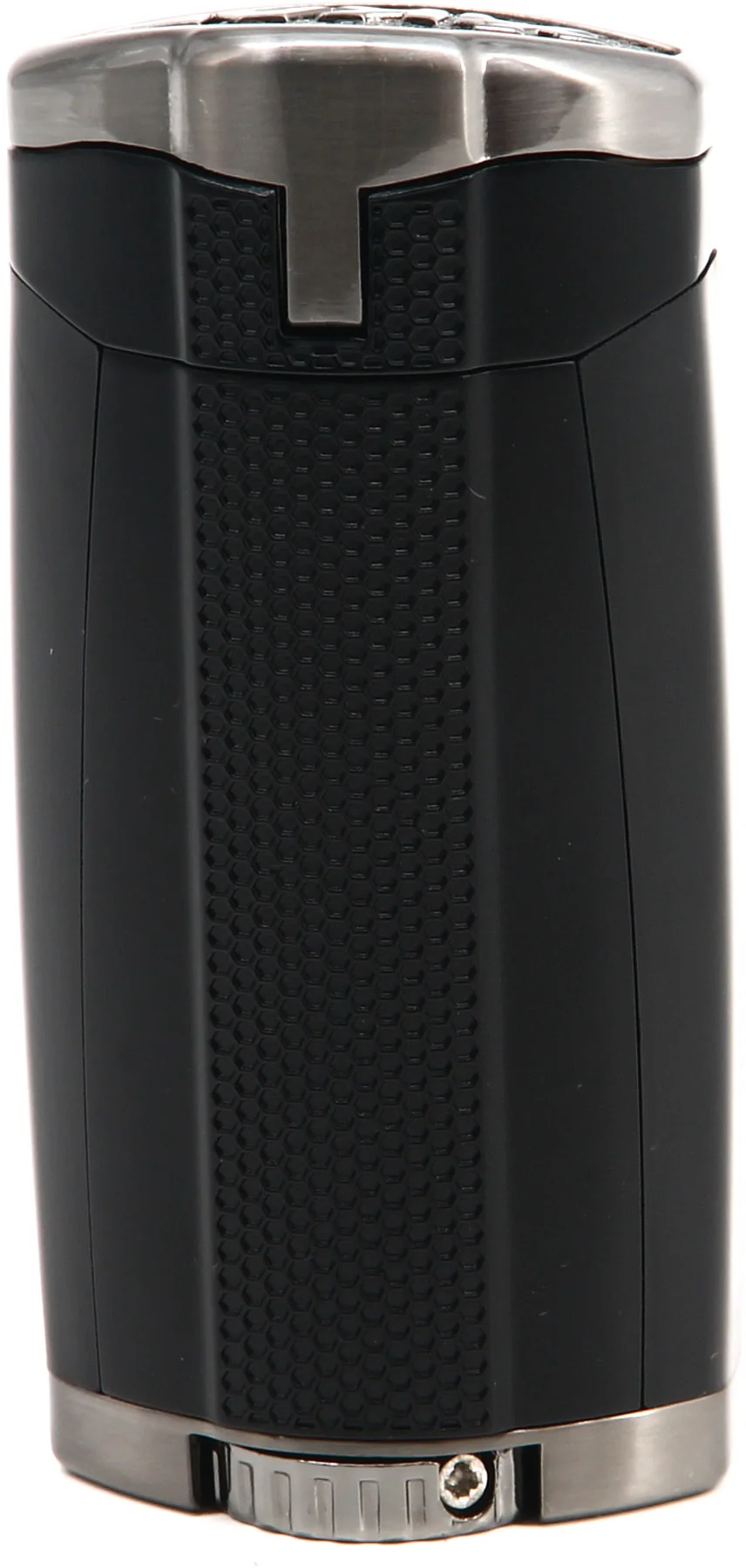 Le couvercle de protection et la gâchette d'allumage coulissante présentent une texture en forme de nid d'abeille qui offre une meilleure adhérence, ainsi comme une touche de panache. Les puissantes flammes à triple jet en ligne du HP3 offrent un contrôle et une couverture inégalés, vous permettant d'allumer les cigares plus efficacement quelles que soient les conditions météorologiques. Vous ajustez les flammes avec la molette de réglage surdimensionnée à la base du briquet. Jetez un œil aux niveaux de carburant n'a jamais été aussi facile avec les grandes fenêtres de niveau de carburant du HP3 situées bien en vue à l'avant du briquet.