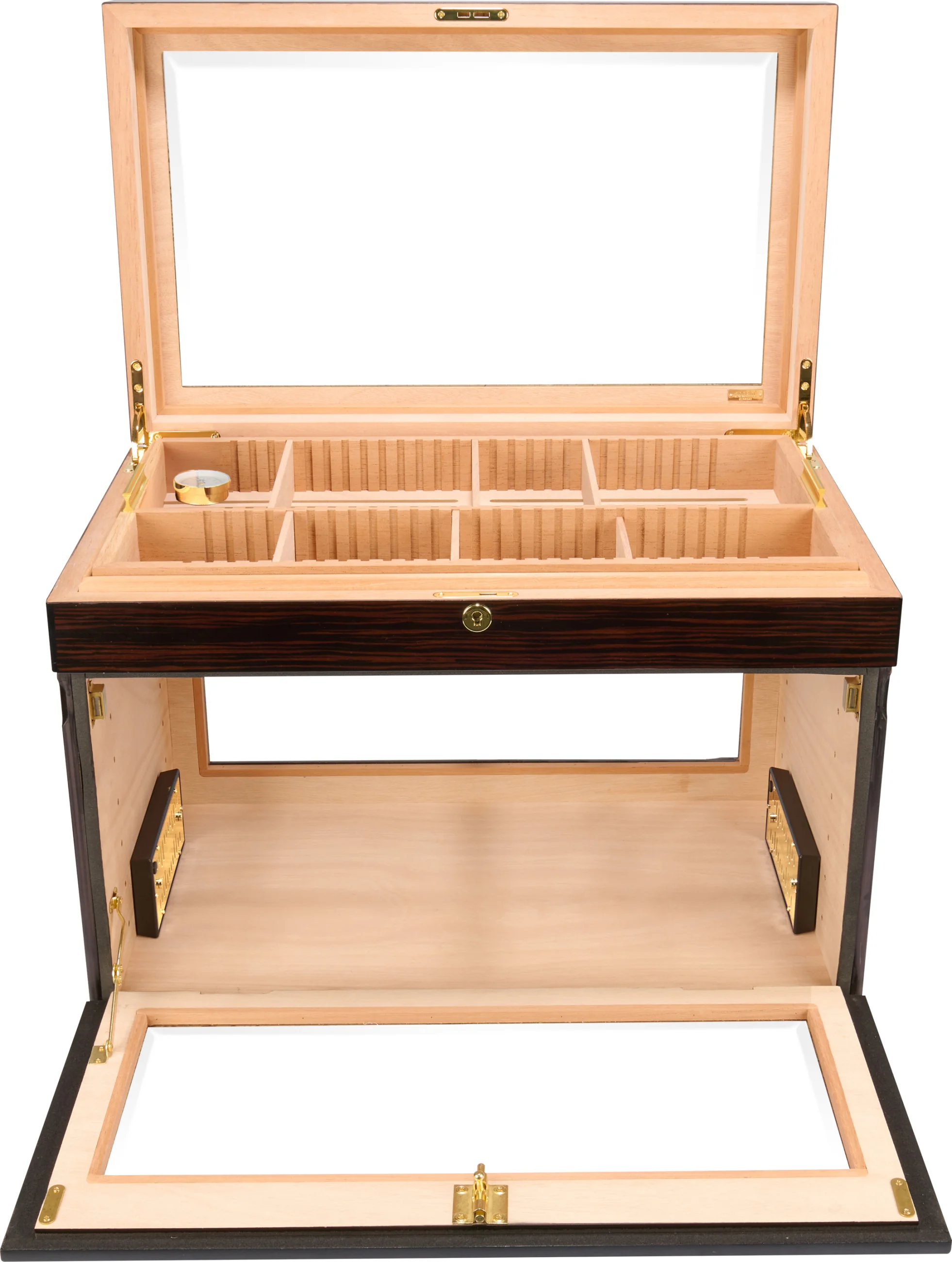 Des cigares individuels, des boîtes ou même des caisses entières de cigares peuvent être stockés sur plusieurs niveaux. L'intérieur peut être divisé en plusieurs compartiments :