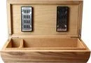 Robuste charnières de qualité supérieure ouvrent le couvercle avec un mouvement fluide et facile pour révéler un espace intérieur en bois de cèdre prêt à contenir jusqu'à 80 de vos cigares Corona préférés</ b>. Vous pouvez séparer les cigares avec le séparateur inclus, tandis que les cigares sont conservés à l'humidité optimale avec deux humidificateurs en polymère acrylique autorégulateurs. Il n'y a pas besoin d'un hygromètre, il suffit d'ajouter de l'eau distillée en cas de besoin, et c'est tout.