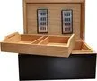 Le couvercle s'ouvre avec la plus grande facilité grâce à charnières de qualité supérieure, révélant un intérieur en bois de cèdre. La construction à corpus épais offre une résistance accrue et une durabilité à long terme. Un plateau coulissant et un séparateur vous permettent de garder vos cigares organisés afin que vous sachiez où aller lorsque vous êtes prêt pour une fumée particulière. Chaque cigare recevra un contrôle constant de l'humidité au moyen de deux humidificateurs autorégulants b>. Ajoutez simplement de l'eau distillée selon vos besoins, et vous pourrez continuer à travailler avec plaisir.