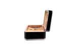Avec une capacité d'environ 100-125 cigares, la cave à cigares offre suffisamment d'espace pour votre collection. A l'intérieur, deux séparateurs verticaux, flexibles et amovibles, garantissent une organisation optimale. L'hygromètre numérique fourni permet de mesurer avec précision l'humidité de l'air, la pile bouton nécessaire étant déjà incluse. L'humidification est assurée par un humidificateur passif, qui est élégamment fixé au couvercle dans un support magnétique en bois. Les charnières argentées à fermeture progressive complètent parfaitement l'aspect général de haute qualité.