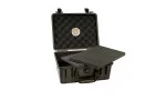 Fabriqué en plastique dur résistant, la cave à cigares rappelle presque une valise. Il est doté d'une poignée robuste et de deux fermetures pliantes qui le rendent étanche à l'eau et à l'air. En outre, une valve d'égalisation de la pression située à l'avant a été spécialement conçue pour les voyages en avion: si la cave est difficile à ouvrir après un vol en raison de la pression de l'air, cette valve permet d'égaliser facilement la pression.