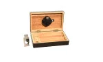 - Un autre compartiment abrite un coupe-cigare guillotine en acier inoxydable de haute qualité, fixé par aimantation. Cette solution innovante protège vos cigares d'éventuels dommages pendant le transport.