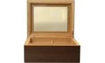 L'humidor comporte un placage givré < / b> de bois de wengé , un bois robuste et séduisant, originaire d'Afrique centrale, souvent utilisé comme alternative à l'ébène. Un panneau de verre ajoute un look contemporain au couvercle qui donnera un air de sophistication à n'importe quel décor. L'intérieur est recouvert de cèdre espagnol , offrant le lieu de repos idéal pour jusqu'à 50 de vos cigares Corona préférés . Vous pouvez les organiser avec un séparateur inclus . Les charnières quadrants de qualité supérieure permettent un mouvement d'ouverture et de fermeture en douceur du couvercle.