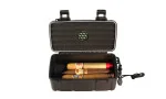 Avec ses dimensions pratiques de 22 x 13 x 8,5 cm, cette cave à cigares se glisse facilement dans vos bagages et est prêt à affronter toutes les situations. Qu'il s'agisse de randonnée, de camping ou de voyages d'affaires, c'est le compagnon idéal pour tous ceux qui ne veulent pas se passer de leurs cigares lorsqu'ils sont en déplacement.