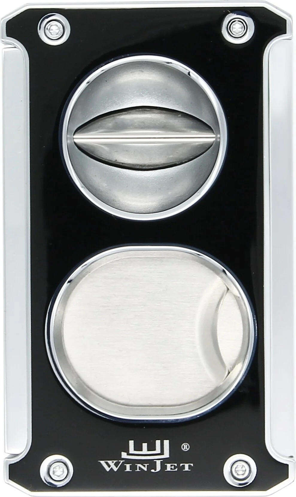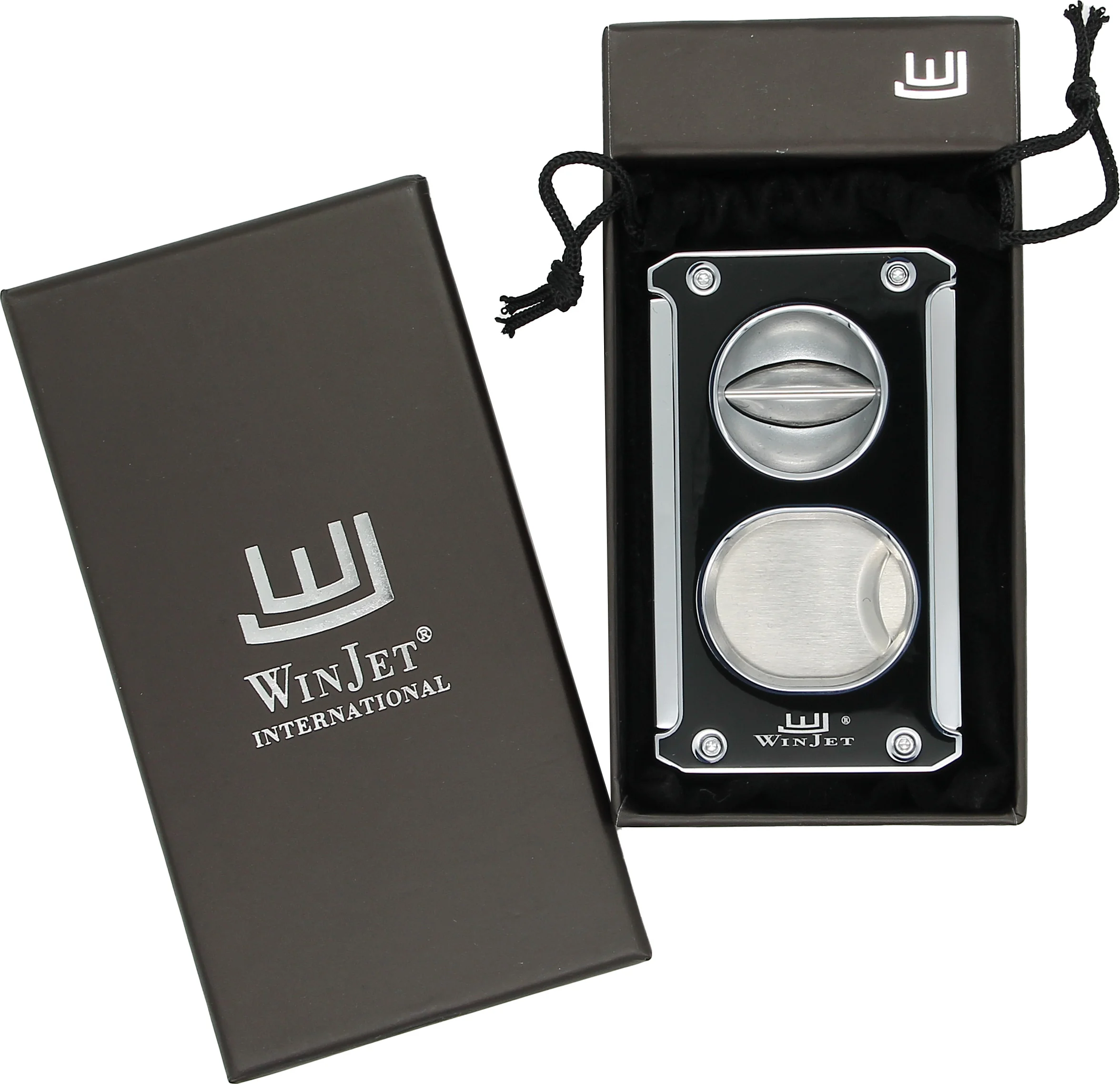 Améliorez votre expérience du cigare avec le coupe-cigare Winjet 3-en-1 en noir brillant avec des accents argentés. Cet accessoire polyvalent répond aux différentes préférences des amateurs de cigares, en combinant une coupe classique, une coupe en V et un emporte-pièce en un seul outil.