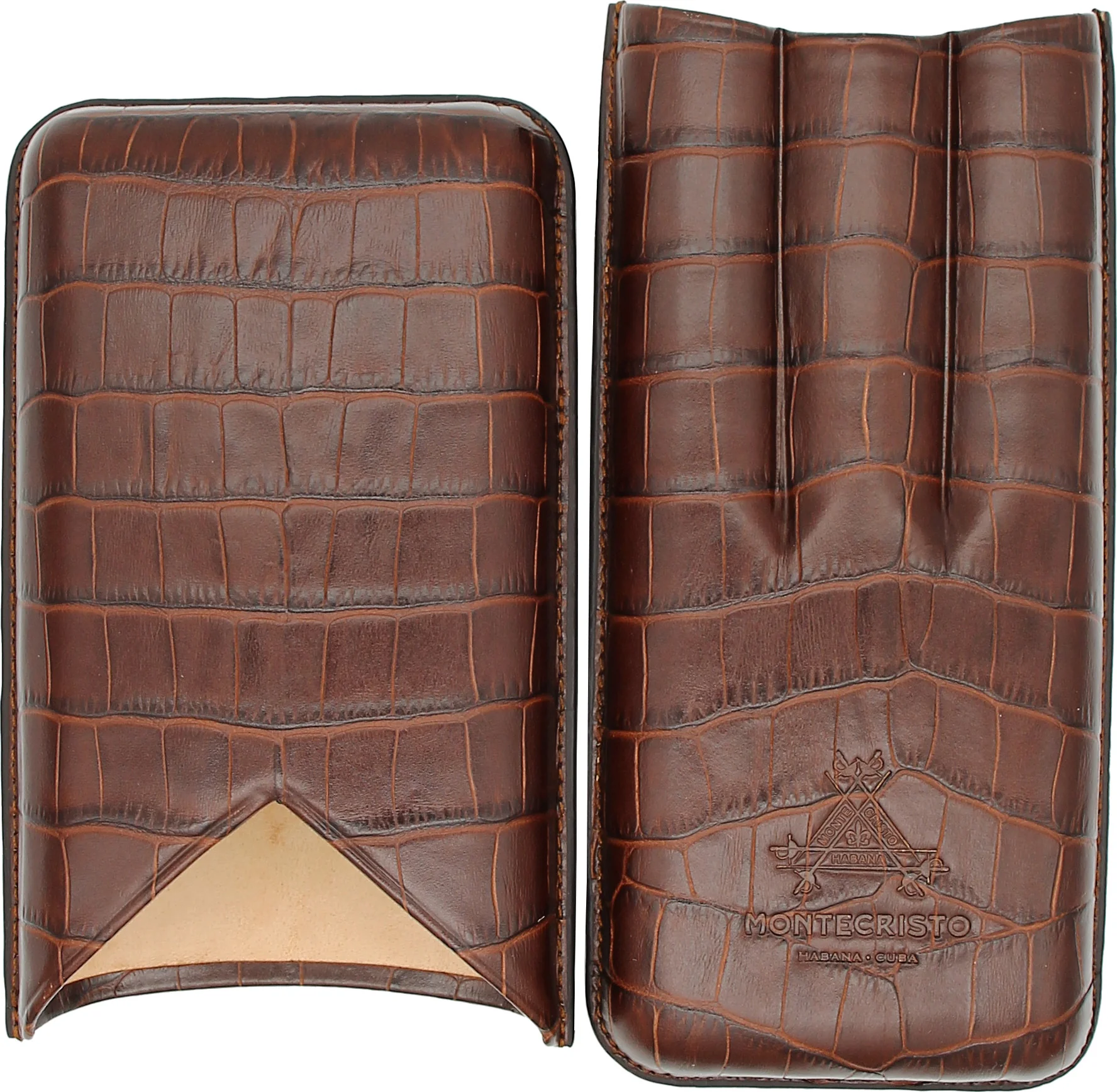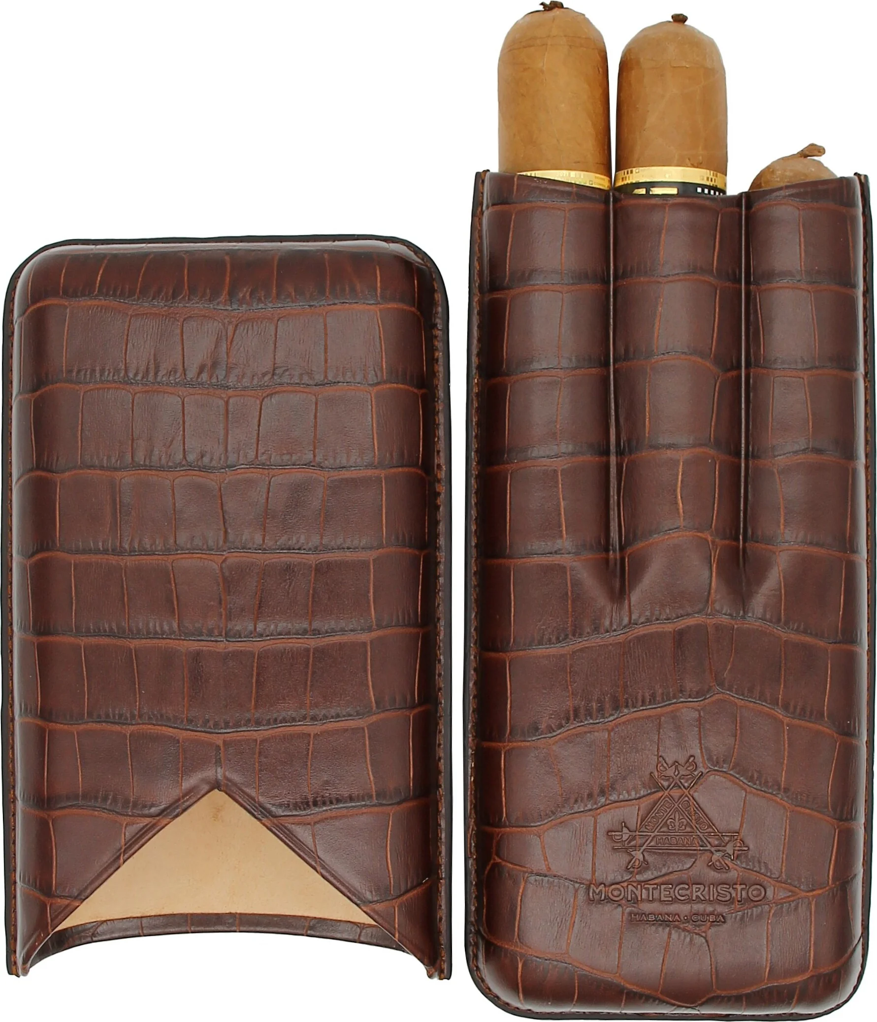 Étui à cigares Montecristo en cuir marron, 3 pièces.