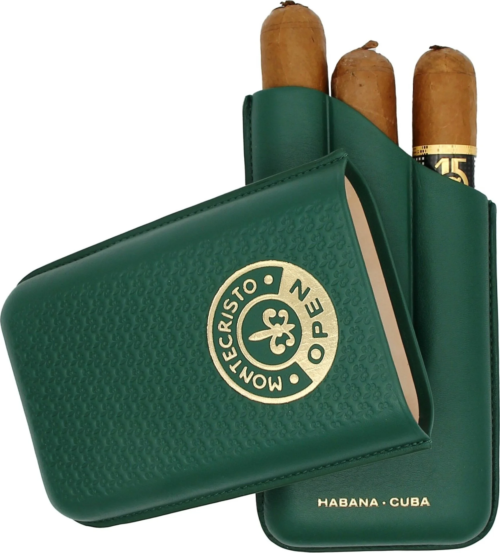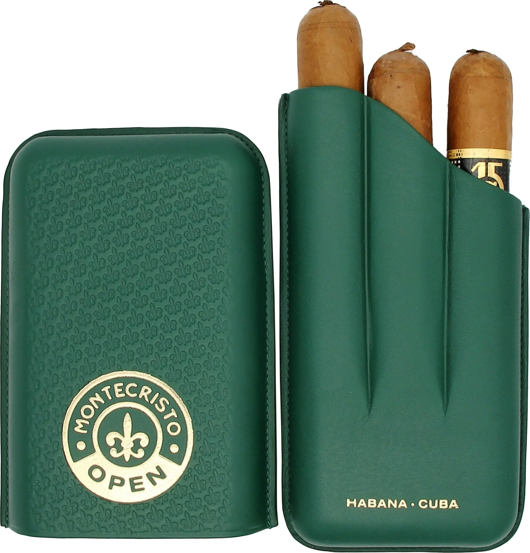 Étui à cigares Montecristo Open en cuir vert, 3 pièces.