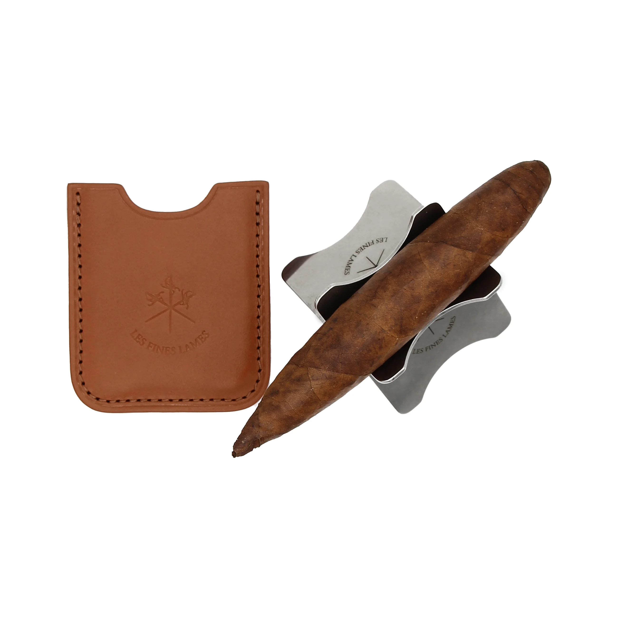 Banc à cigare avec étui en cuir Fauve (ou Tan) — Les Fines Lames