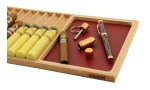 - Huit fentes pour les cigares, adaptées à tous les formats de cigares jusqu'à 18,5 cm de long.