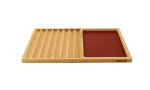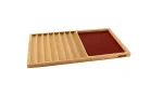 Le plateau de service à cigares adorini avec insert rouge est une façon élégante et pratique de présenter vos cigares avec style. Ce plateau de haute qualité en bois de cèdre est parfait pour une utilisation dans les hôtels, les bars, les salons de cigares ou les maisons privées. L'insert rouge en cuir lisse italien fin protège vos accessoires de cigares des rayures et assure une bonne prise en main. Le plateau comporte huit fentes qui offrent de l'espace pour les cigares, qui peuvent également être empilés. Il accueille tous les formats de cigares jusqu'à une longueur de 18,5 cm et mesure 34 x 19,5 x 1,3 cm. Le plateau de service adorini est également disponible sans l'insert en cuir rouge dans notre boutique.