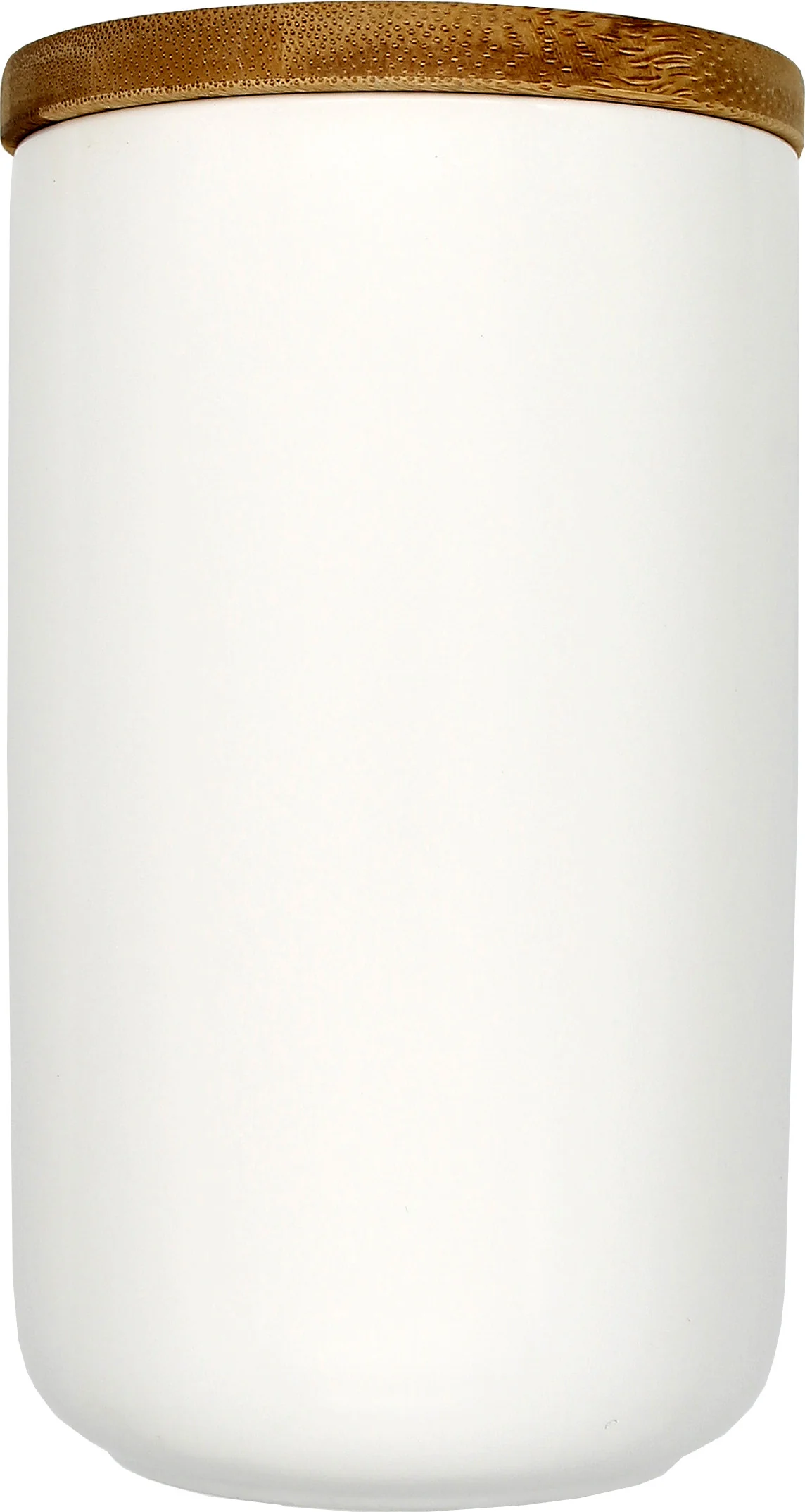 - Élégant pot à cigares en porcelaine blanche avec couvercle en bois.