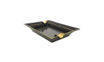 - **Design et matériaux :** Le cendrier est fini dans un noir profond avec des garnitures dorées. Il comporte deux généreux repose-cigares, offrant un emplacement élégant et pratique pour vos cigares.