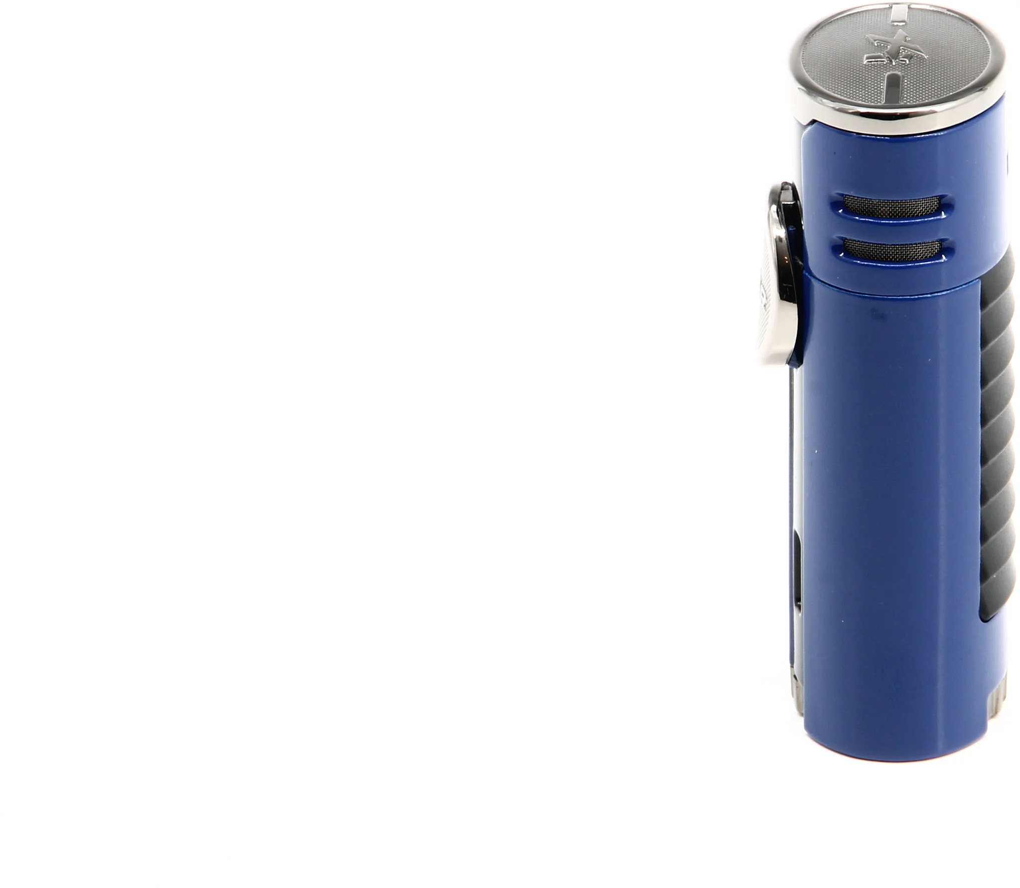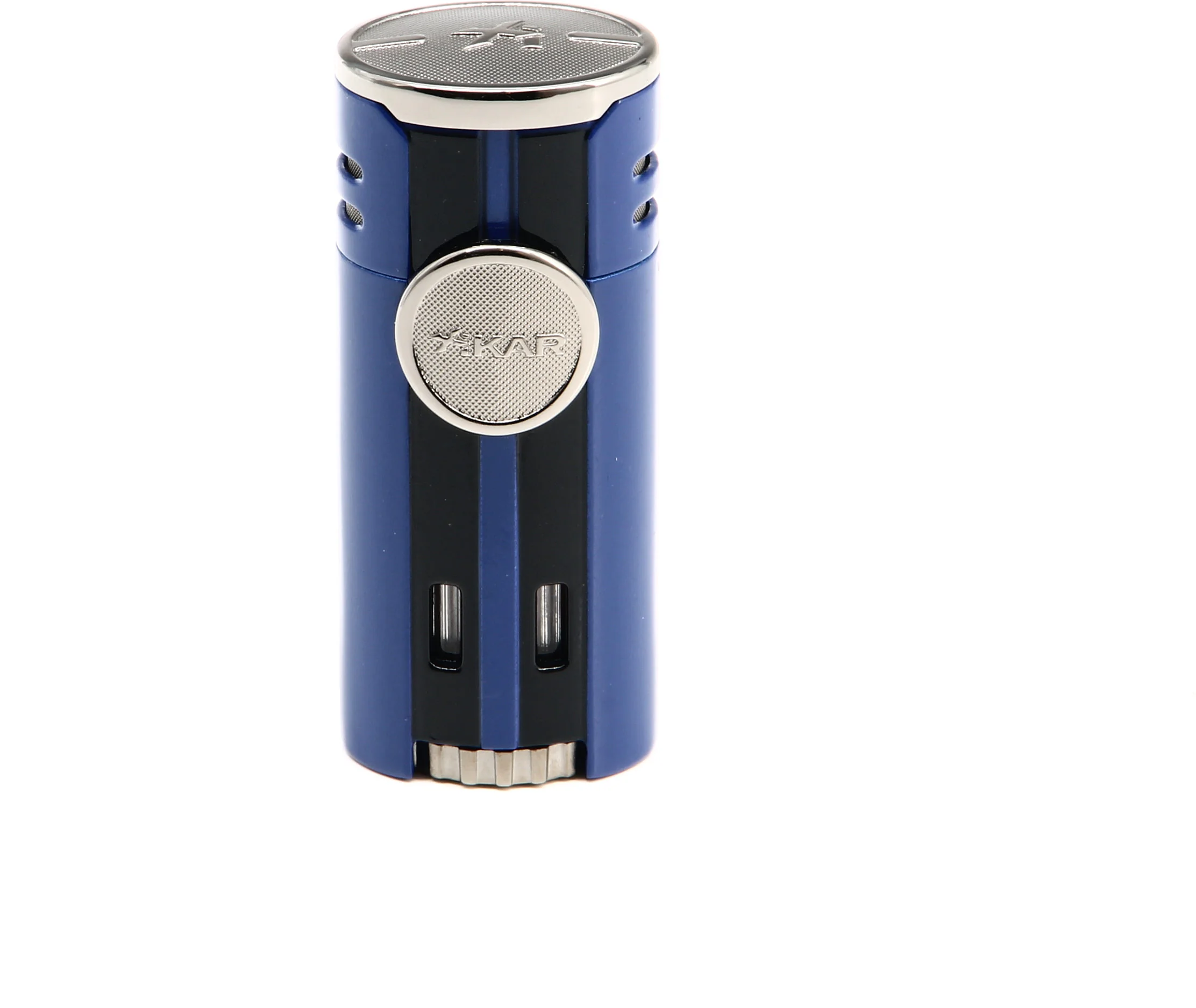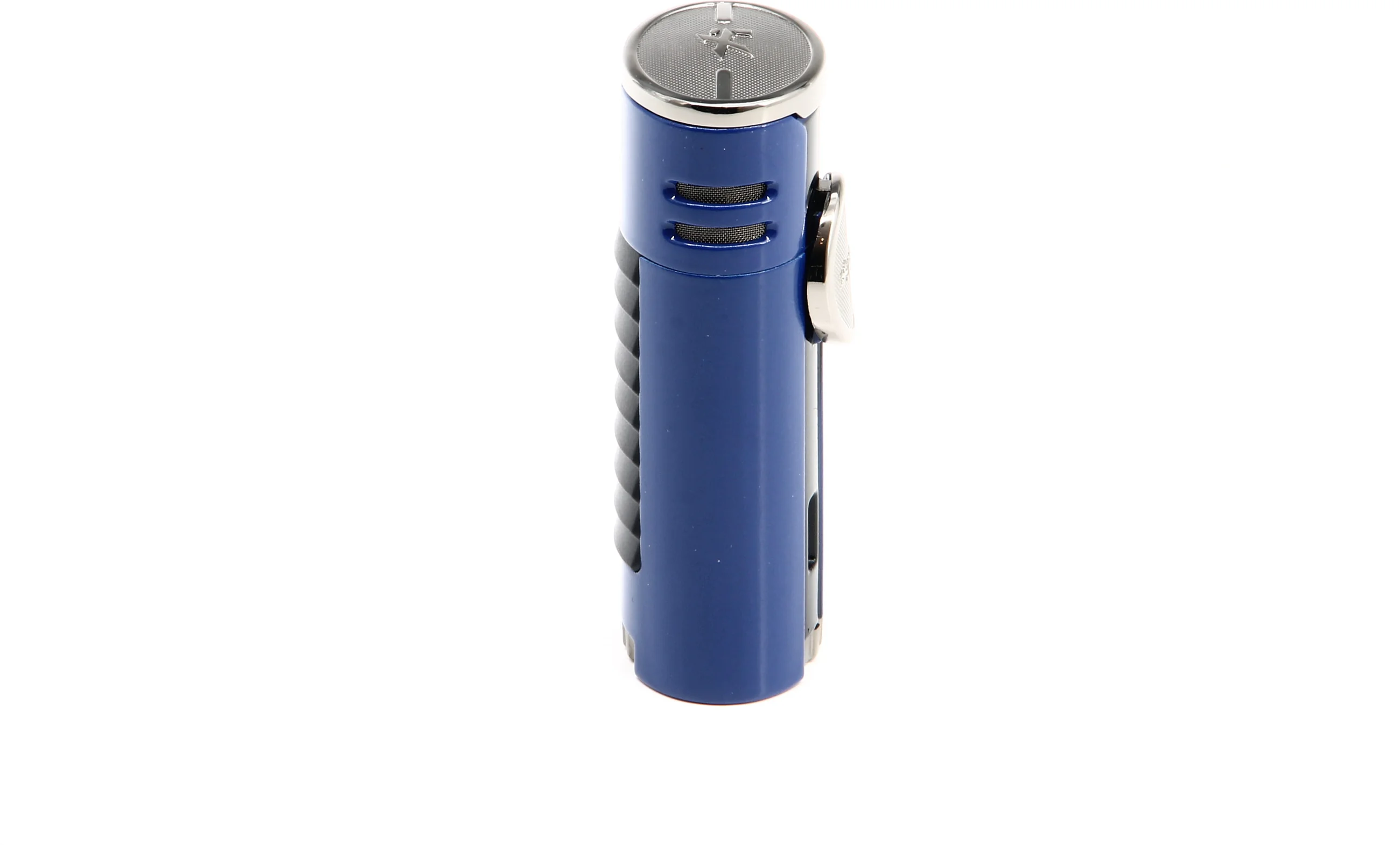 Ce briquet Xikar HP4 Quad attire immédiatement le regard avec une finition bleue frappante soulignée par des accents chromés . Rappelant les supercars qui ont inspiré le design du briquet, un panneau arrière à persiennes ajoute une touche supplémentaire au look élégant et moderne.